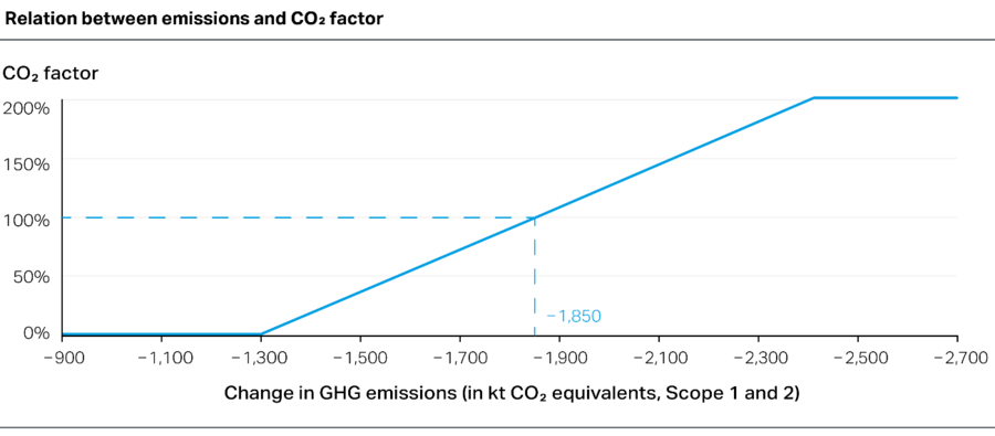 2 The figures used for the CO2 factors introduced are based on the emission values forecast in October 2025 for the respective final years of the individual tranches.